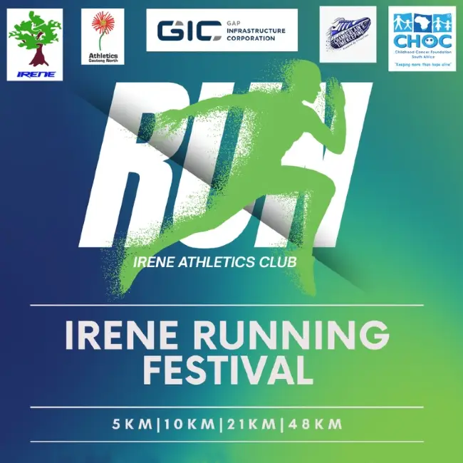 The 2026 Irene Running Festival will take place on Saturday, 4 April 2026, starting at 06h00 at Denel Dynamics, Nellmapius Drive, Irene in Centurion, Gauteng.